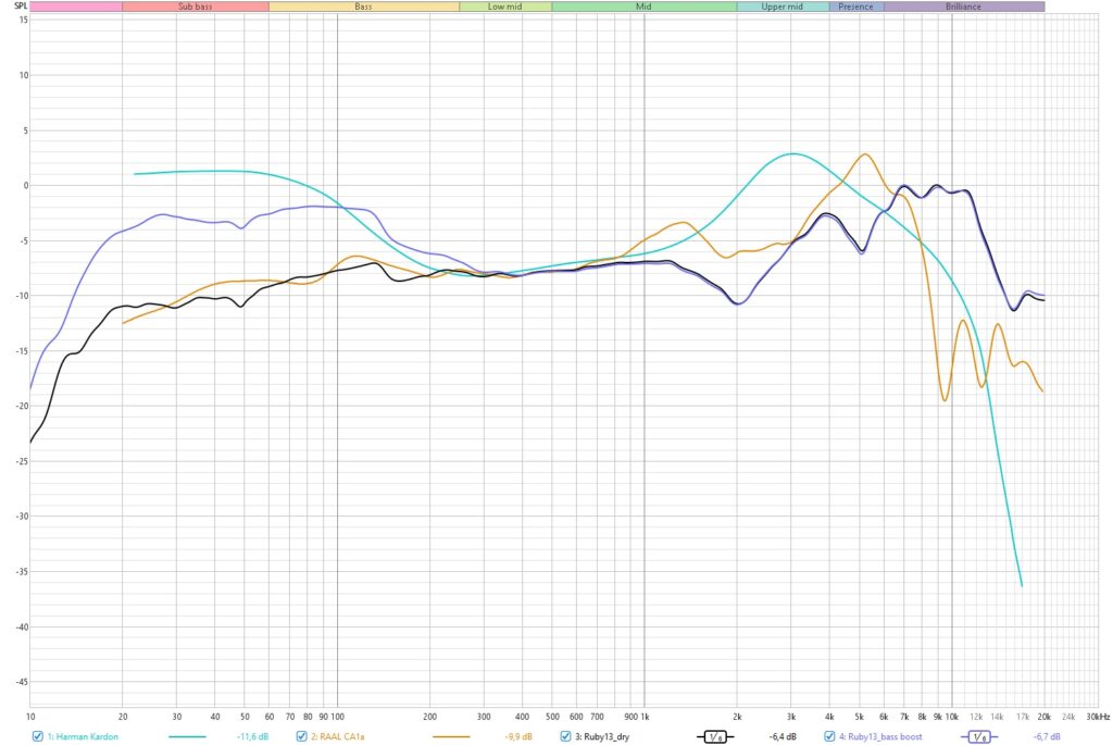 Straight out of the box, the Ruby13 have a emphasis on frequencies above 2000 Hz (The high frequencies are slightly elevated compared to the Harman target curve). Therefore, I strongly recommend using a software equalizer or, if available, an analog EQ on your amplifier. I make measurement the frequency response of every single unit. The ribbon driver responds exceptionally well to equalization, allowing you to tailor the sound to your precise personal taste.